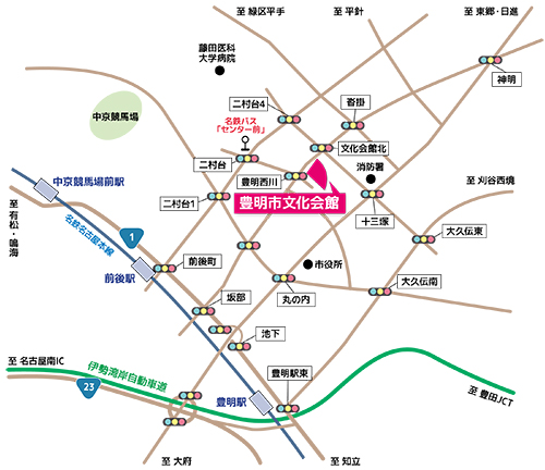 名鉄バスターミナル2番乗り場発 ひまわりバス中央循環コース青ルート乗車「文化会館」下車 「文化会館」バス停より徒歩すぐ